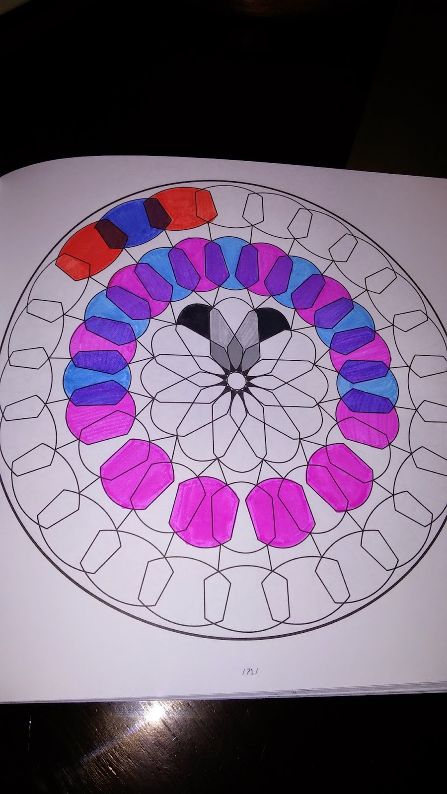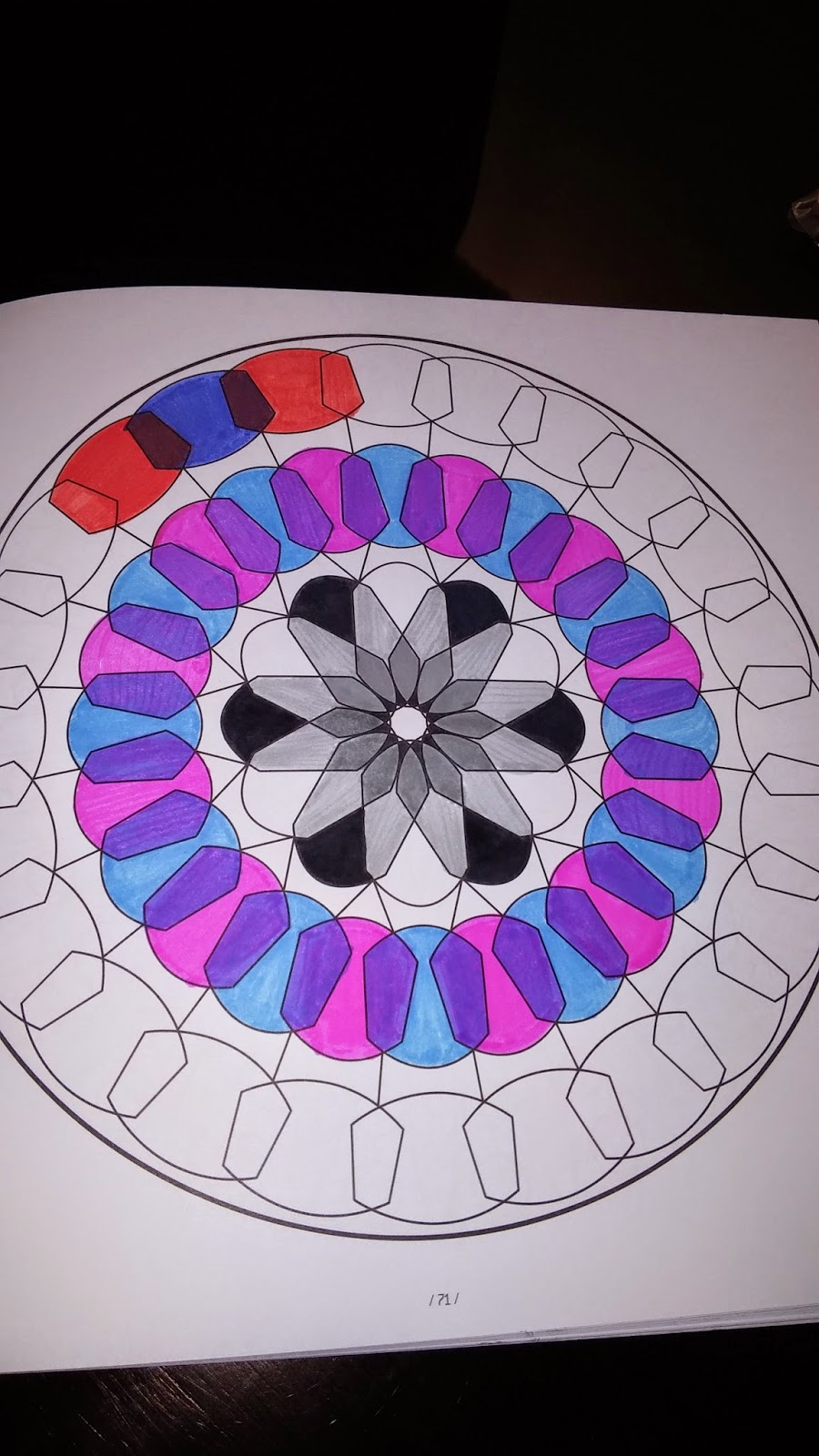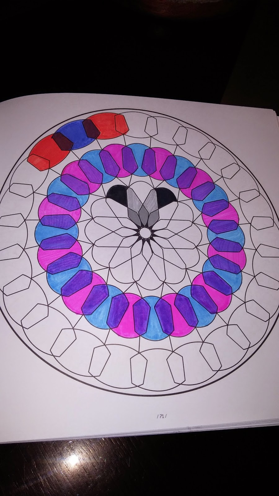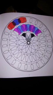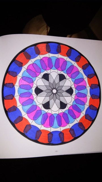 Se trata de una mandala abrupta, inmediata, sin apenas sutilezas y con una continuidad de patrón que invita a la reflexión central. La corona exterior negra le otorga cierta continuidad. El proceso ha sido rápido y espontáneo. La llamo Extrañez Otoñal.