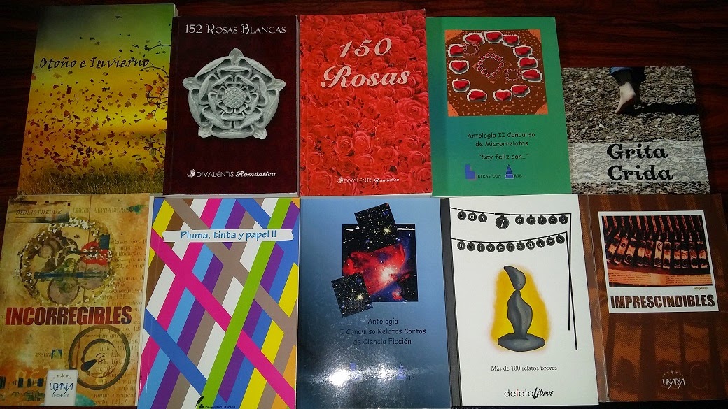 El año pasado ha sido un año fructífero en mi producción literaria. He conseguido publicar bastantes textos en libros colectivos y eso me llena de alegría. Os dejo una muestra con todas las publicaciones en las que han aparecido.