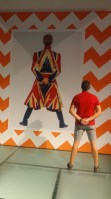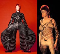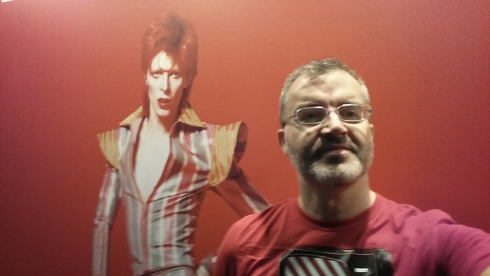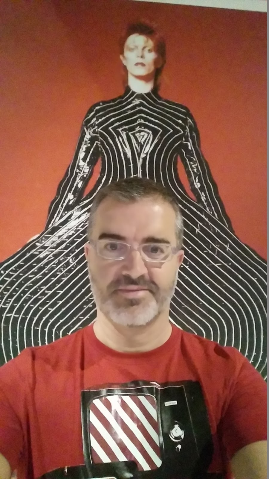 La exposición ofrece al visitante una innumerable lista de detalles, informaciones y curiosidades sobre la inabarcable carrera de Bowie. Descubrí por ejemplo que Life on mars? Fue compuesta en un día, que cuando comenzó a finales de los 60 no sabía ni escribir las notas musicales y tuvo que “empollarse” un libro como guía y ayuda. Que vivió con Iggy Pop en Berlín, o que uno de sus libros favoritos de la época fue Adiós a Berlín, de Christopher Isherwood. Que escandalizó a la sociedad británica en el 72 con su aparición en televisión con un mono de tela plastificada naranja y azul, el pelo naranja de punta y botas rojas, o que tantos elementos de sus creaciones fueron censurados, como el vestido “tela de araña” que era una simple tela de araña (hilos) con tres manos que lo “sujetaban” desde detrás, una en cada pecho y otra en sus genitales. Esta tercera mano fue censurada y se quitó pero entonces, la provocación era aún mayor, cosa que se resolvió añadiendo unos leggins dorados.