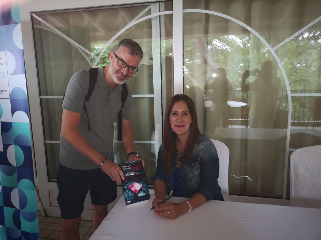 Después, durante la pausa del café, tuve la ocasión de charlar brevemente con ella y de que me firmase un ejemplar de su novela ESPERANDO AL DILUVIO, así que la lectura estaba doblemente motivada por este encuentro.