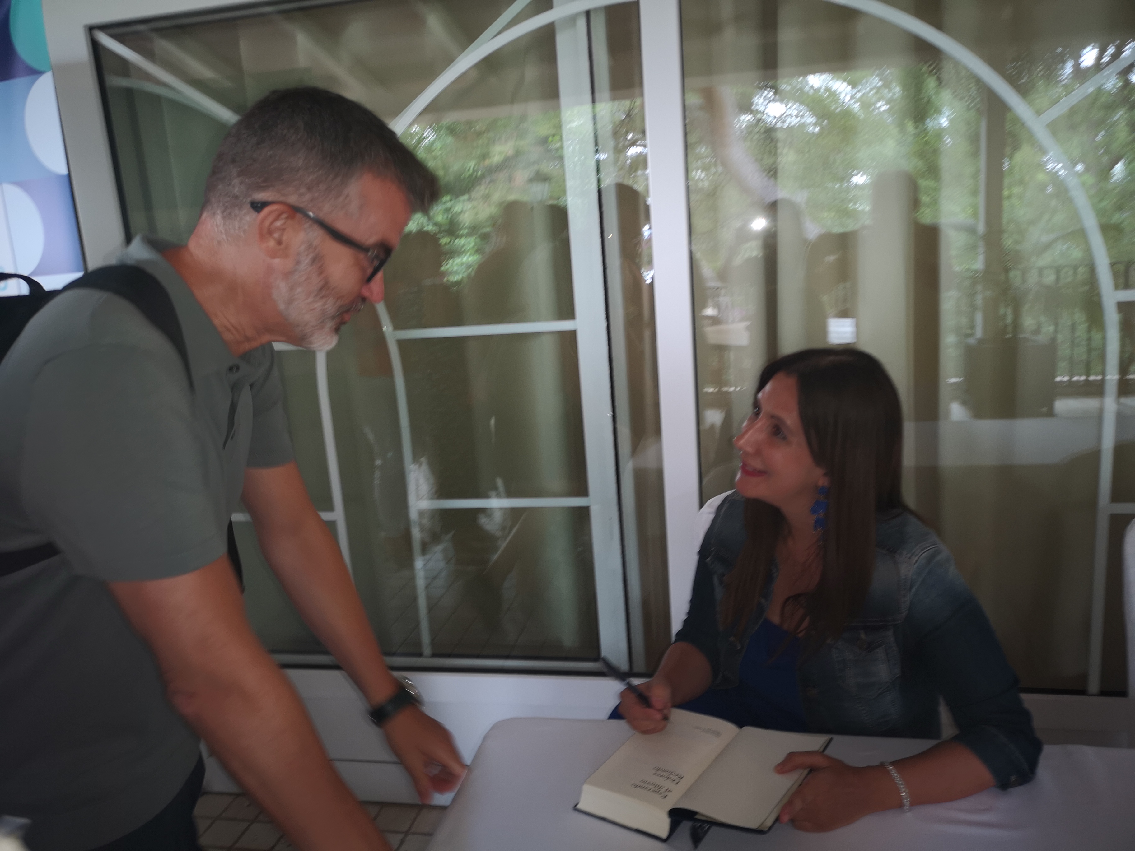 Después, durante la pausa del café, tuve la ocasión de charlar brevemente con ella y de que me firmase un ejemplar de su novela ESPERANDO AL DILUVIO, así que la lectura estaba doblemente motivada por este encuentro.