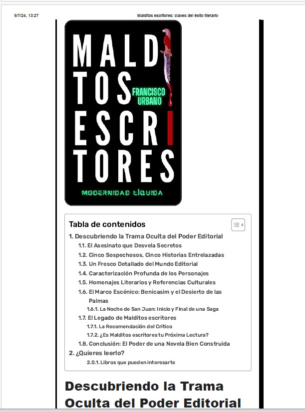 Descubrí hace unos días esta reseña extensa y muy interesante sobre mi tercera novela titulada Malditos Escritores, escrita en el blog Literario.es