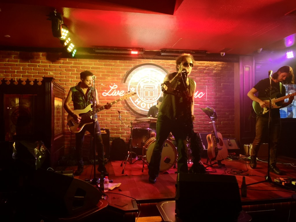 Y allí estamos mi mujer y yo, rememorando nuestra juventud, ya que prácticamente nos conocimos en La Estación del Silencio, antiguo garito de los auténticos Héroes del Silencio en Zaragoza, cuando todavía no habían triunfado, y nos pegábamos allí las tardes de domingo escuchando buena música, charlando y bebiendo. Cuando de repente empiezo a escuchar una melodía, es casi como una letanía, no consigo recordar la cantante que la interpreta, lenta, lánguida y acompasada. Pero sí identifico algo muy importante. ES la misma melodía que los verdaderos Héroes utilizaban antes de comenzar sus conciertos. Ese detalle me da la medida de lo buenos que van a ser quienes van a actuar. Un detalle pequeño pero muy significativo. Sin pensarlo, nos adelantamos a primera fila de escenario y recibimos al cantante que arranca un concierto demoledor.