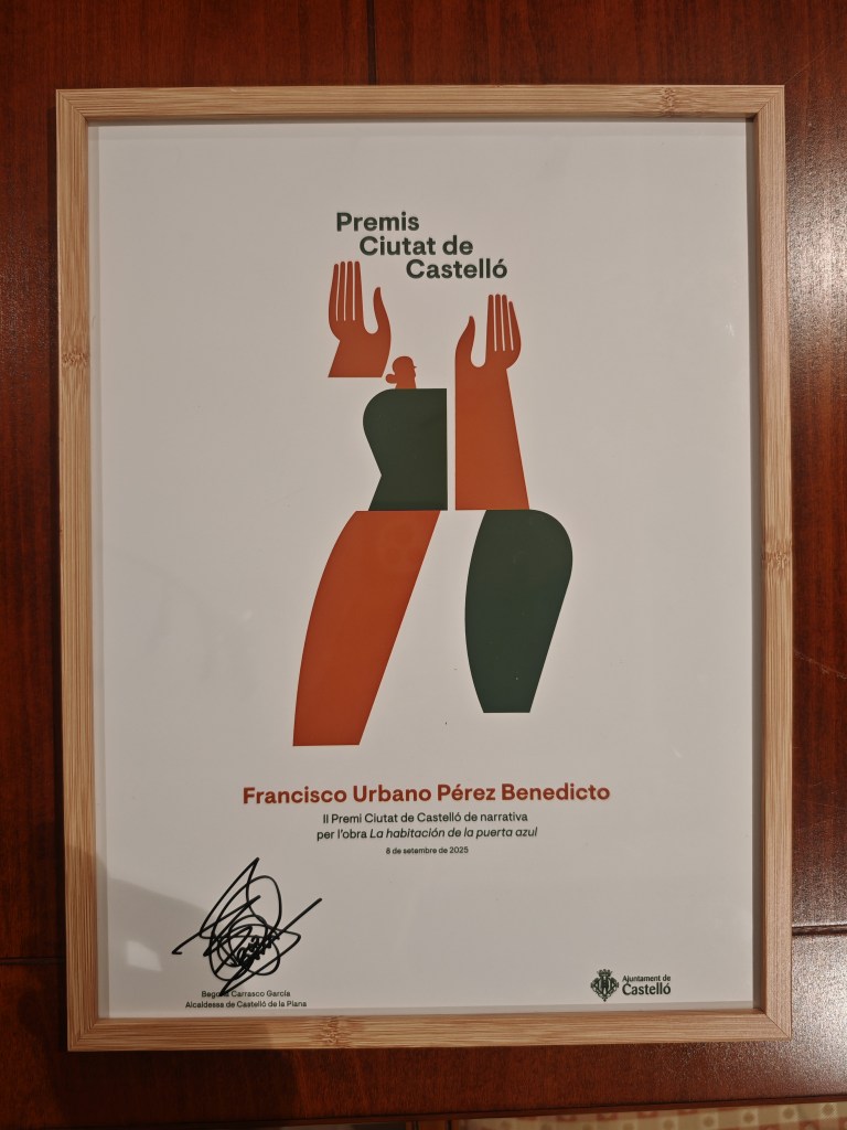 Y es que Castelló es una tierra en la que la cultura tiene un peso específico propio, en la que la creatividad desborda gracias a tantos creadores y siempre es un lujo que el esfuerzo y el talento se premien. En mi caso no puedo estar más agradecido al jurado, por haber seleccionado mi nueva novela, todavía no publicada, titulada: La habitación de la puerta azul, como merecedora del premio de Narrativa, a Rosario Raro por ser siempre un apoyo y por hacer tanto por la literatura de esta tierra, a Castellón, mi tierra de adopción y a todos quienes me leen desde hace ya mucho tiempo y quienes me apoyan en esta aventura que es la literatura.